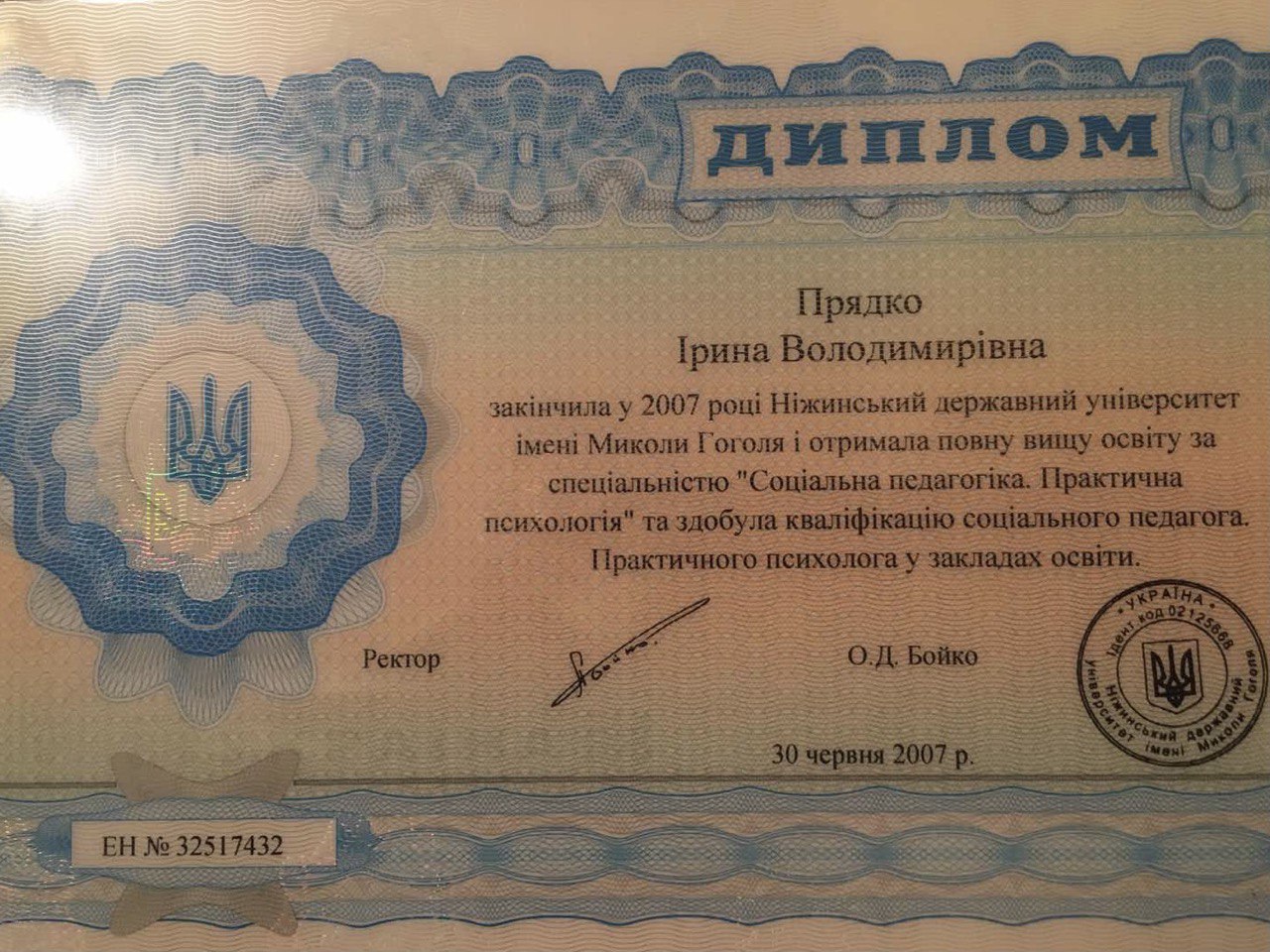 - Нежинский государственный педагогический университет имени Н.В. Гоголя, 2007 г