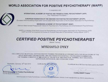 - World Association for Positive Psychotherapy (WAPP) - Позитивный психотерапевт, 2015 г