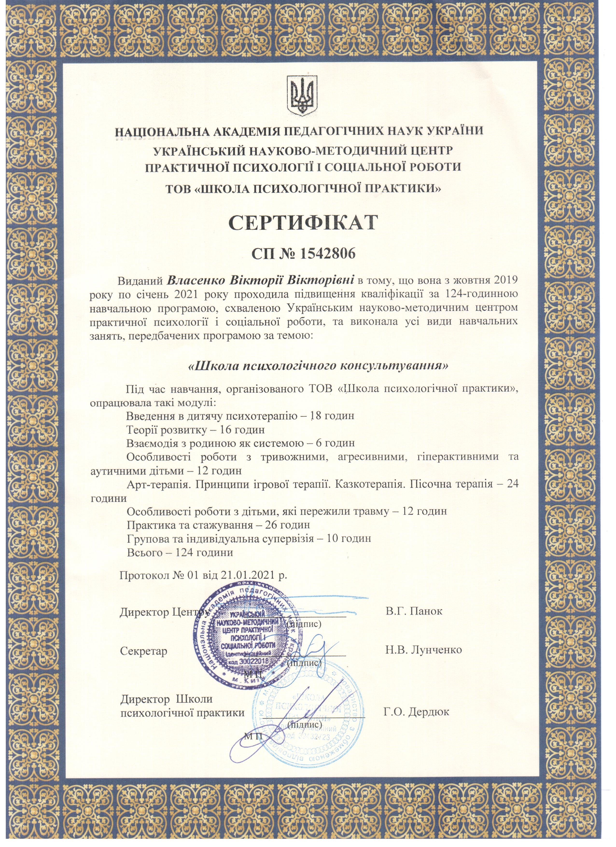 - Национальная Академия Педагогических Наук Украины - Школа психологического консультирования, 2021 г